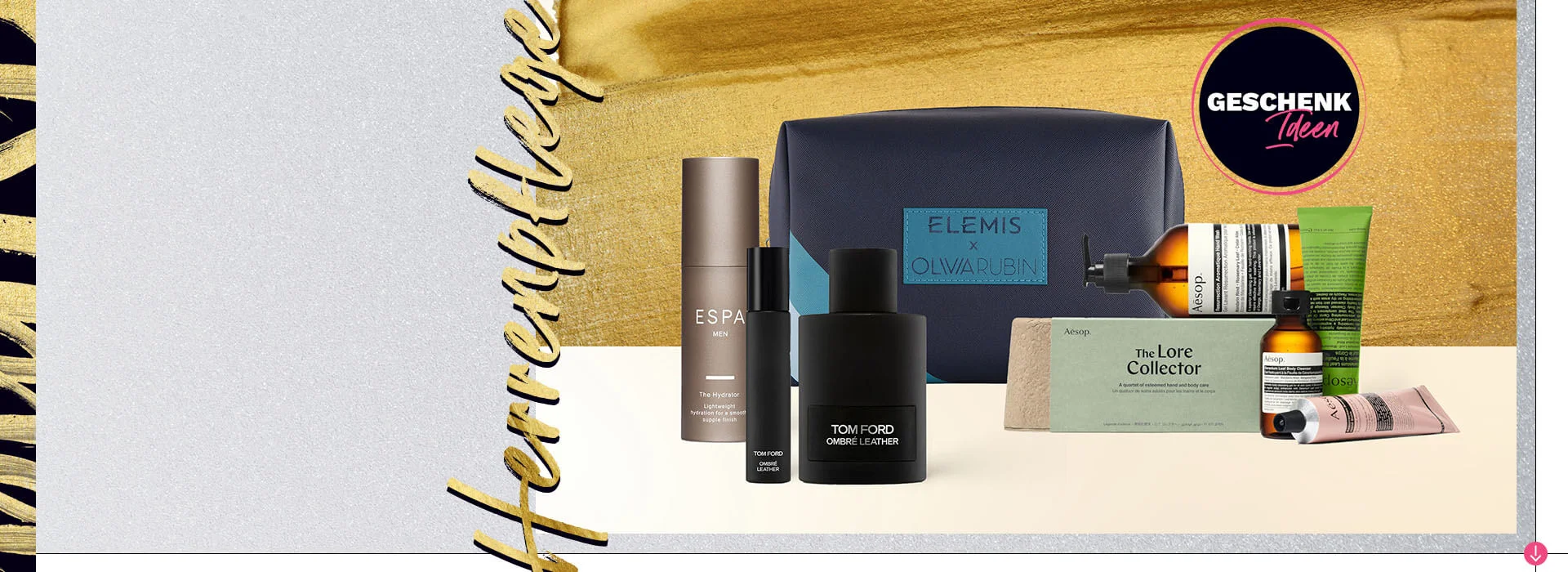 Aus einer Zusammenarbeit zwischen Elemis und Olivia Rubin stammt eine Sammlung von Hautpflegeprodukten, die in einer luxuriösen Tasche in limitierter Edition enthalten sind. Dieses Set enthält alle wichtigen Dinge, vom Rasiergel bis zum Gesichtsreiniger und der Feuchtigkeitscreme. Es ist das perfekte Geschenk.